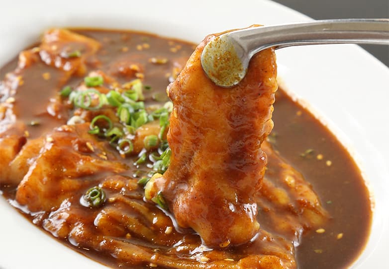 こだわりの黒毛和牛は、妥協しない素材の中から更に厳選された物を使用。味鶴園名物 〆の冷麺はモチモチ、シコシコ、さっぱりのどごしの特製麺。相性抜群の特製スープはあっさりとした中にも出汁の旨味を感じ、焼肉のあとにもツルリといけます。